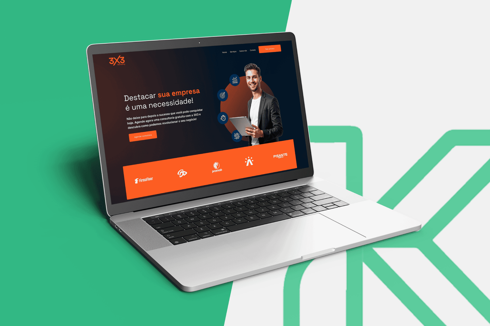 A 3×3 Marketing, uma agência jovem e ambiciosa, buscava estabelecer sua identidade digital com profissionalismo, clareza e modernidade. O desafio era criar um site que refletisse o espírito inovador da equipe, transmitisse credibilidade para seus clientes e oferecesse uma plataforma curta e eficiente para apresentar seus serviços.
